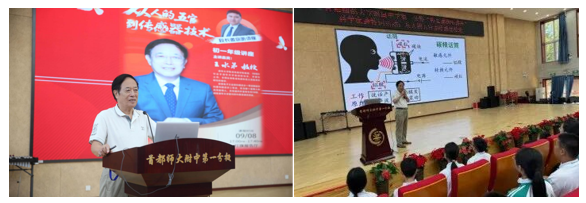 9月8日,清华大学老科协科普演讲团团长王水弟教授,为初一年级全体学生带来了一场题为“从人的五官到传感器技术”的精彩科普讲座。