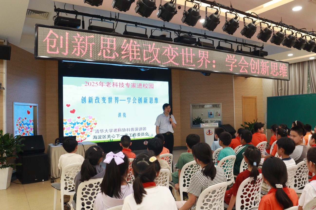 2025年9月25日,清华大学洪亮副教授走进校园,为北京市海淀区中关村第一小学西二旗分校80名五年级学生带来《创新思维改变世界:学会创新思维》的科普讲座。本次活动是海淀区关心下一代工作委员会“老科技专家进校园”系列科普项目的活动之一,旨在为青少年搭建接触前沿科技的桥梁,进一步提升海淀区青少年科学素养,积极储备科技创新后备力量。