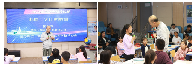 10月10日下午,国连杰研究员为北京石油学院附属小学本校区带去的科普讲座为“火山的故事”。该校115名五至六年级孩子聆听了这堂沉浸式的火山知识讲座。