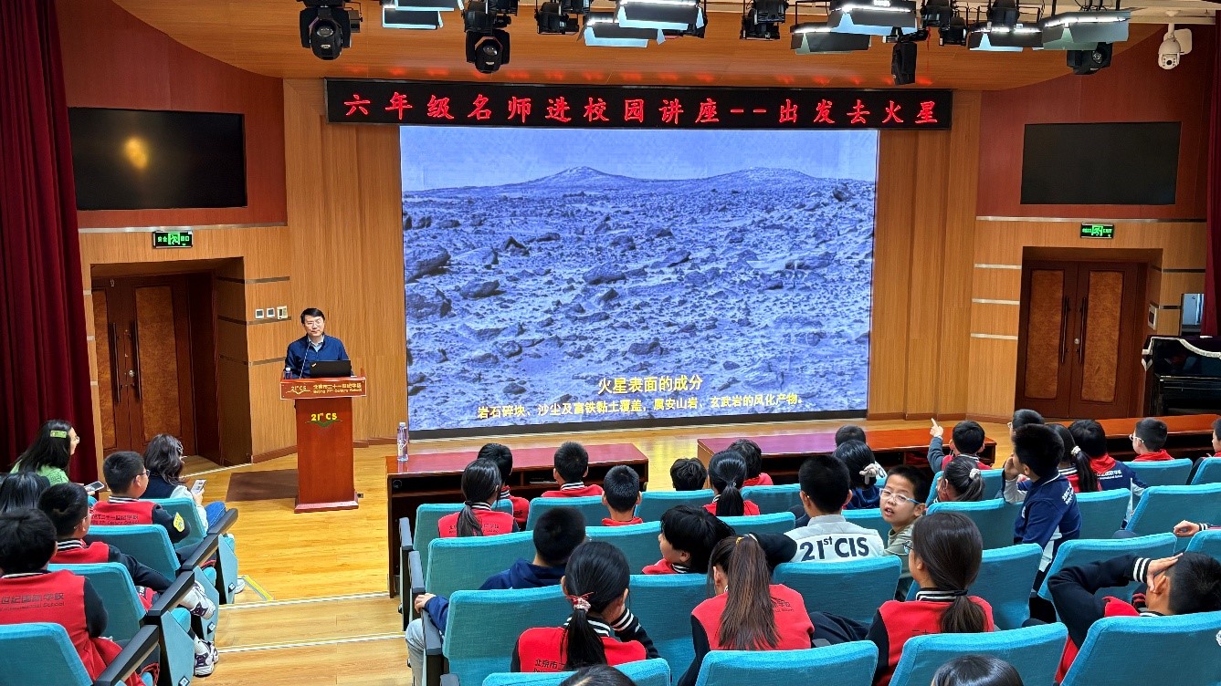 2025年10月21日下午,清华大学老科协科普团专家钱航研究员应邀走进北京市二十一世纪学校“知识就是力量·科学家领读者”科普讲座活动现场,以《出发去火星》为主题,为该校160多位六年级学生进行了一次精彩纷呈的星际探索之旅。