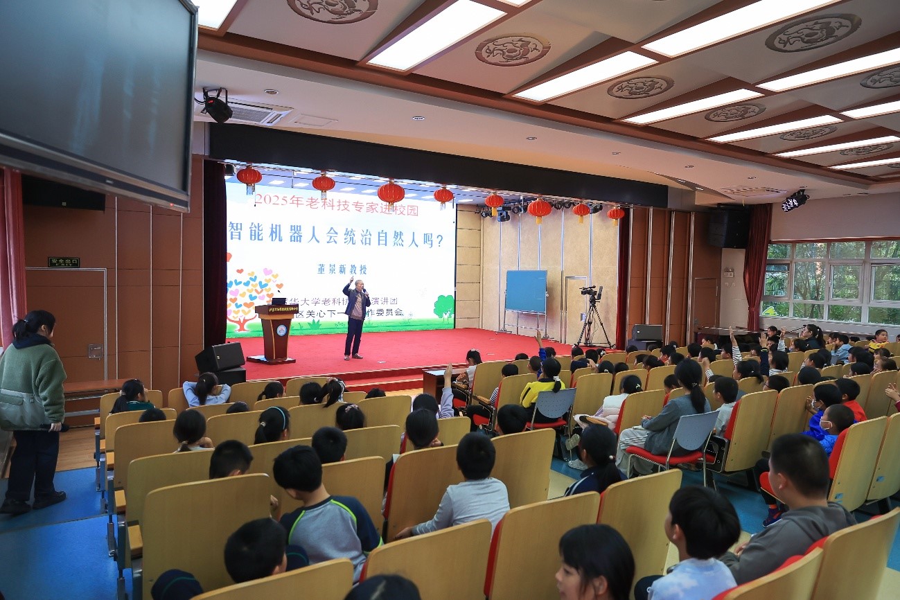 10月24日下午,清华大学老科协科普演讲团专家董景新教授走进北京石油学院附属实验小学,为该校300多名小学五年级学生作了一场 “智能机器人会统治自然人吗?”的科普讲座。该讲座是海淀区关工委“老科技专家进校园”科普系列活动的重要组成部分,核心目的在于进一步提升海淀区青少年科学素养,积极储备科技创新后备力量。