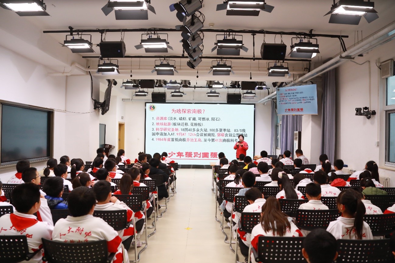 “少年强则国强”,赵琦老师特别分享了中小学生参与极地科考的故事。2011 年起,部分中小学生利用寒暑假走进南极,在考察中不仅亲眼见证了极地奇观,更在实践中磨练了意志。他们发扬团队协作精神,采集了水样、冰芯、植物化石、动物遗骸、土壤等 200 多个样品,用实际行动诠释了 “科学没有捷径 、只有不畏劳苦、勇敢攀登的人,才能抵达预定目标。”。 赵老师的话,让孩子们深刻理解了科学探索的艰辛与坚持的意义。
