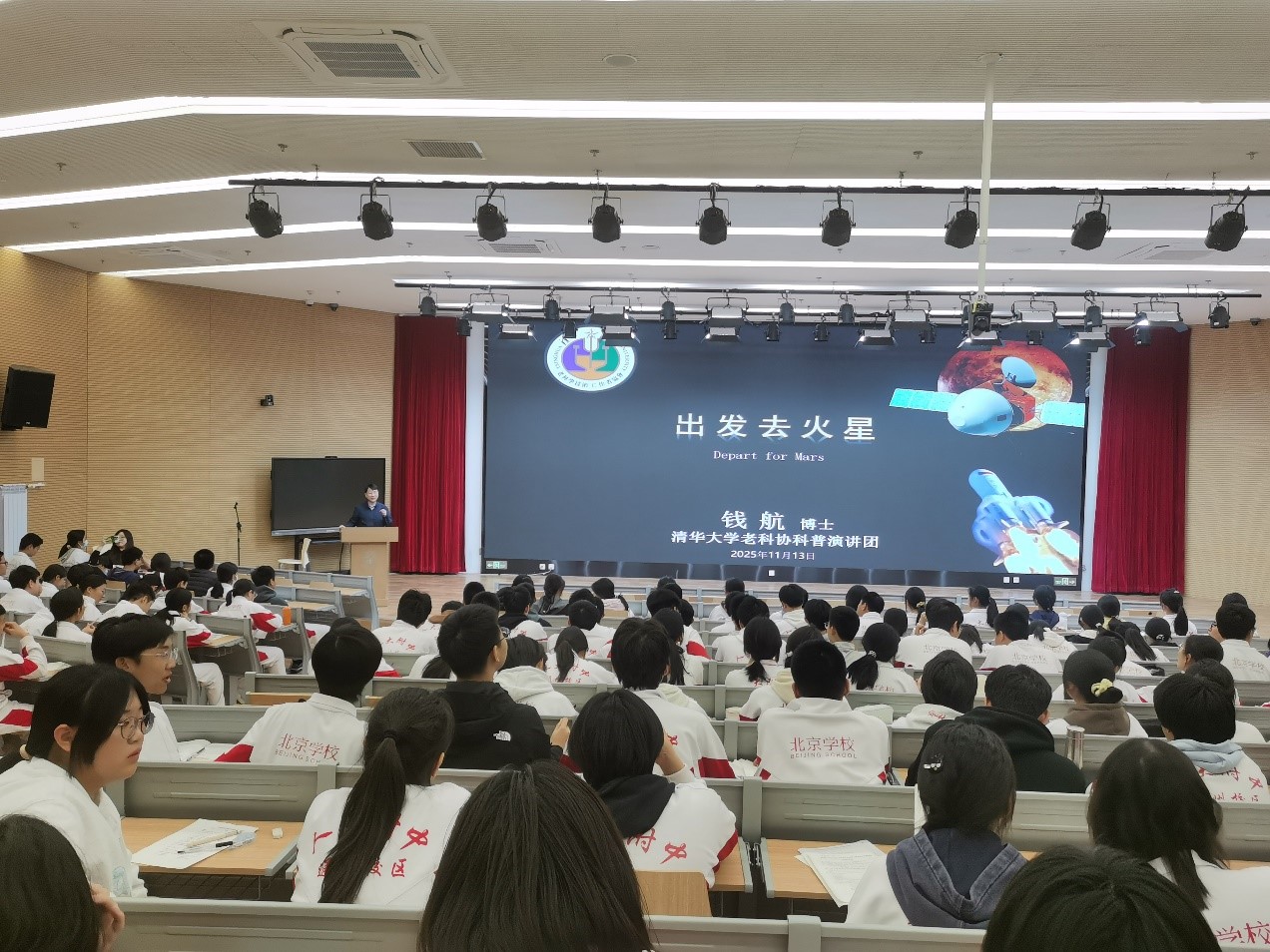 2025年11月13日,人大附中通州校区联合北京学校共同举办的 “2025 航空航天主题科技嘉年华”正式拉开帷幕。本次活动以 “逐梦九天 探索无垠” 为核心主题,邀请了清华大学老科协科普团专家钱航研究员做主旨报告《出发去火星》,线上线下共计3000余名师生齐聚现场与云端,共同开启一场沉浸式航天探索之旅。
