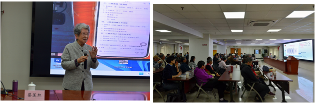 现场气氛热烈又轻松,老同志们听得专注、记得认真,不时点头称赞。有的人拿出手机跟着操作、有的人不断的拍照、也有的人记了十几页的笔记。互动环节大家踊跃提问,从工具使用到健康咨询,蔡教授亲切、温和又专业的解答,赢得现场阵阵掌声。
